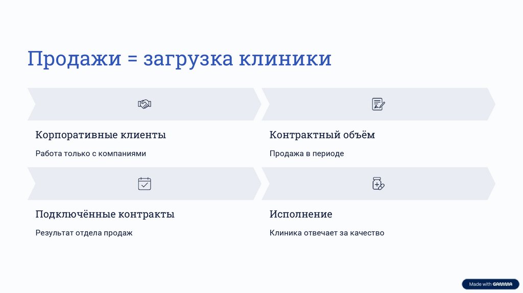 Продажи = загрузка клиникиКорпоративные клиенты