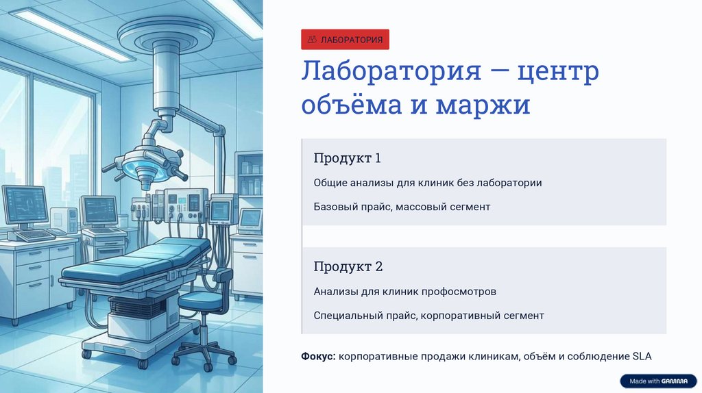 Фокус: корпоративные продажи клиникам, объём и соблюдение SLA