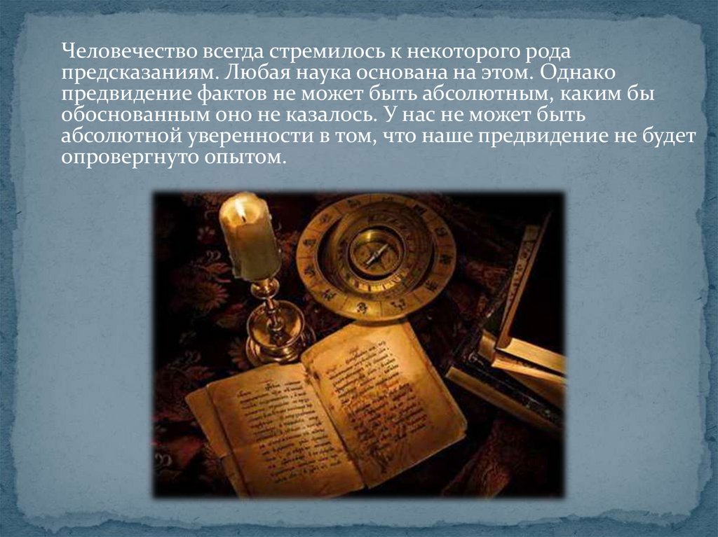 Человечество всегда стремилось к некоторого родапредсказаниям. Любая наука основана на этом. Однако
