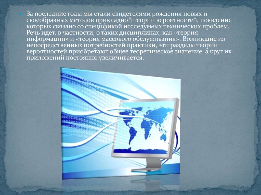 За последние годы мы стали свидетелями рождения новых исвоеобразных методов прикладной теории вероятностей, появление