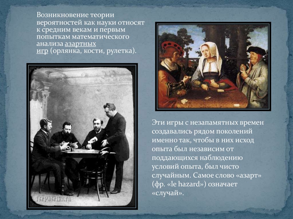 азартных игр и аналогичные им задачи широко употребляются при изучении