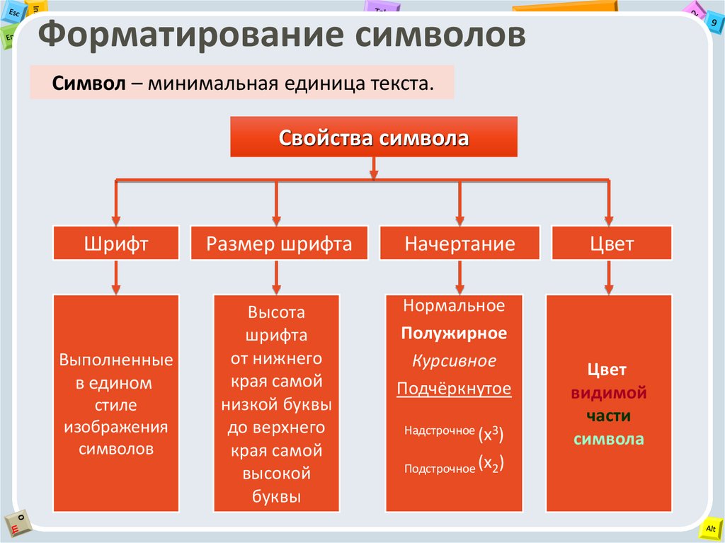 Форматирование символовСимвол – минимальная единица текста.