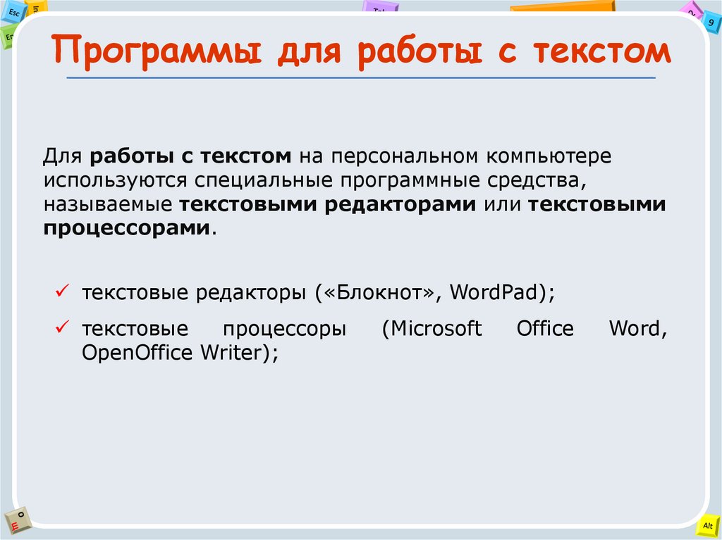 Программы для работы с текстомДля работы с текстом на персональном компьютере