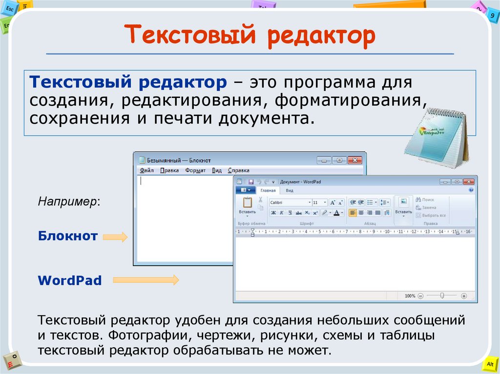 текстовые редакторы («Блокнот», WordPad);