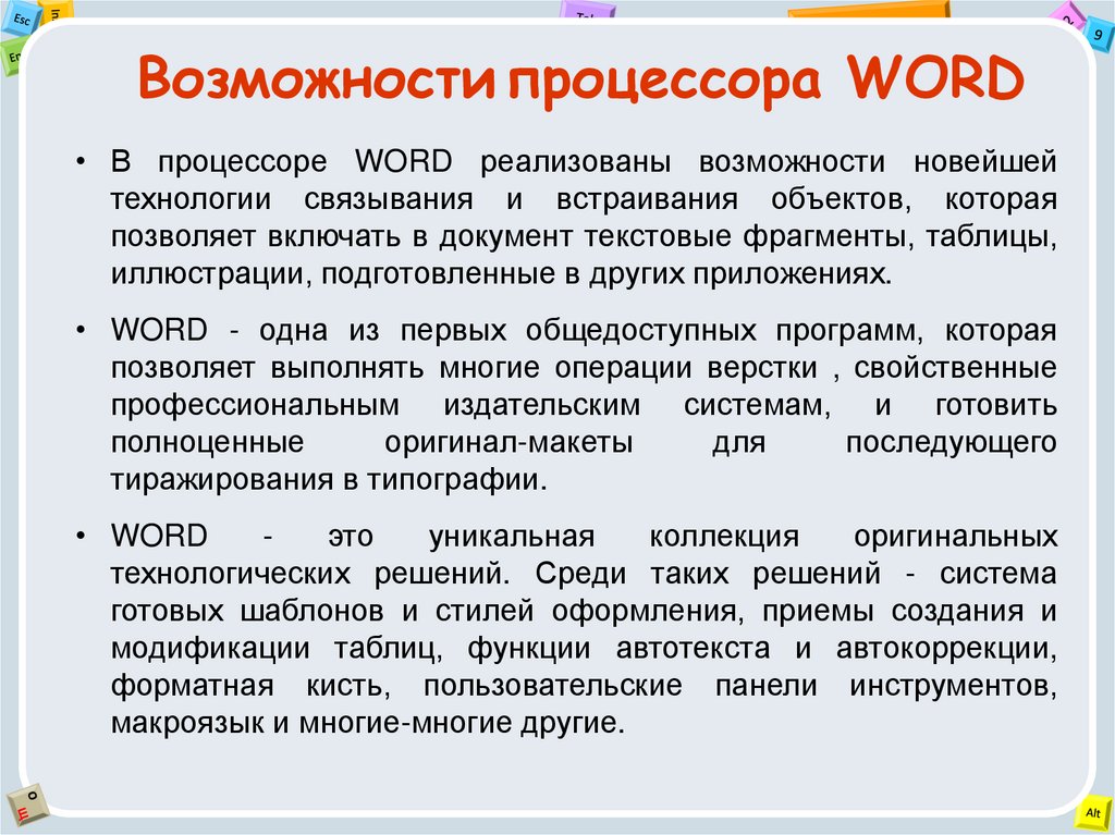 Возможности процессора WORD• В процессоре WORD реализованы возможности новейшей
