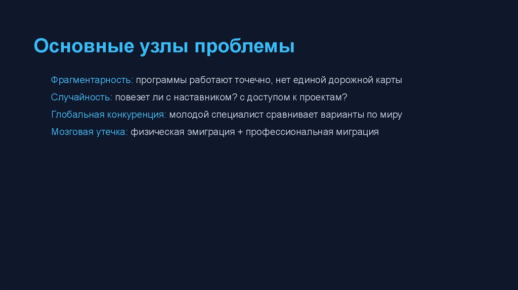 Основные узлы проблемыФрагментарность: программы работают точечно, нет единой дорожной карты