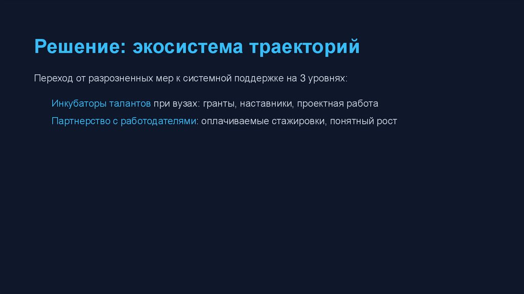 Решение: экосистема траекторийПереход от разрозненных мер к системной поддержке на 3 уровнях: