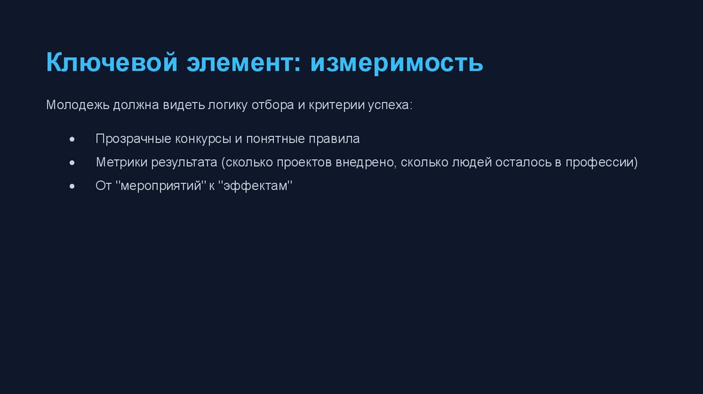 Ключевой элемент: измеримостьМолодежь должна видеть логику отбора и критерии успеха: