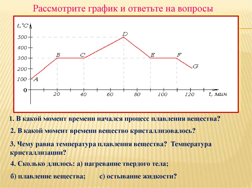 Рассмотрите график и ответьте на вопросы1. В какой момент времени начался процесс плавления вещества?
