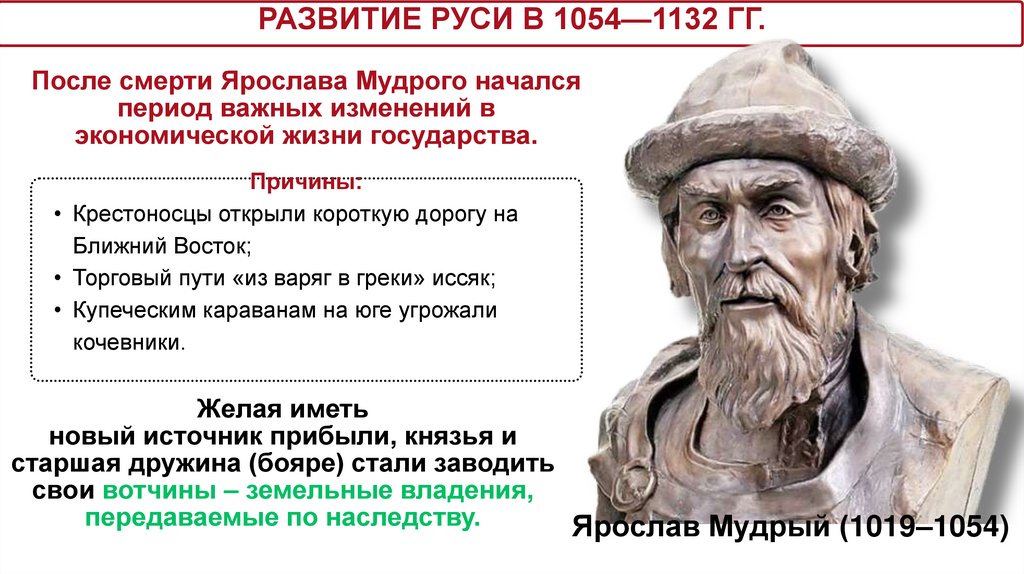 РАЗВИТИЕ РУСИ В 1054—1132 ГГ.После смерти Ярослава Мудрого начался