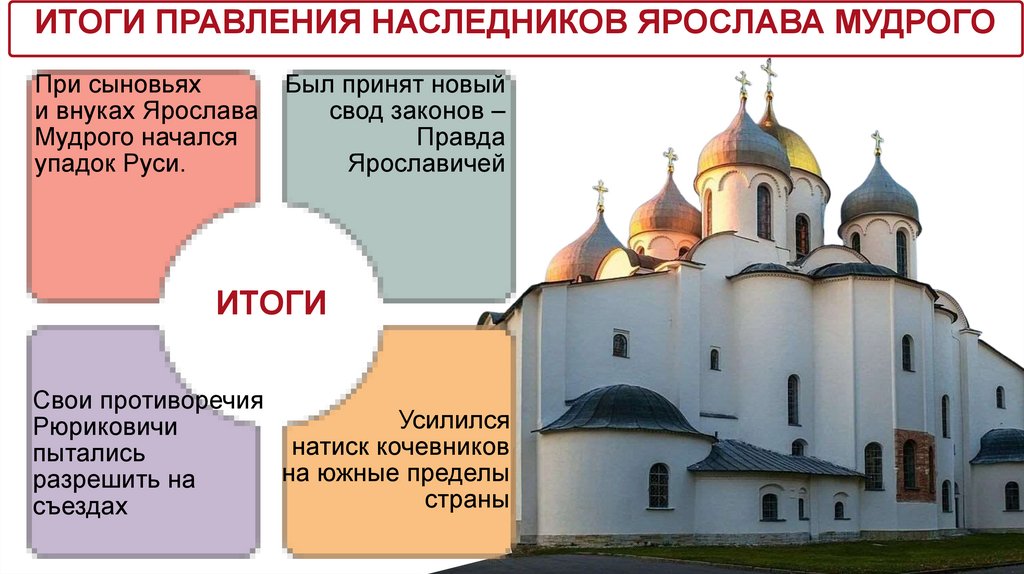 ИТОГИ ПРАВЛЕНИЯ НАСЛЕДНИКОВ ЯРОСЛАВА МУДРОГОПри сыновьях
