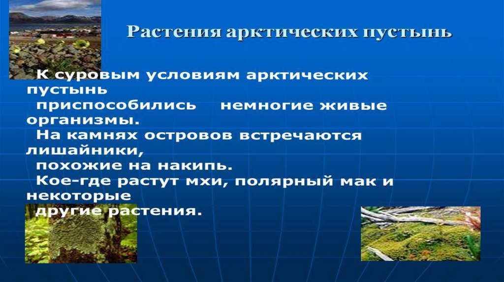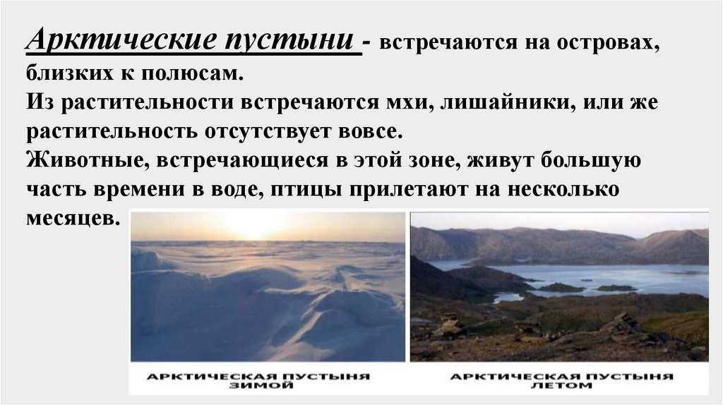 Арктические пустыни - встречаются на островах,близких к полюсам.