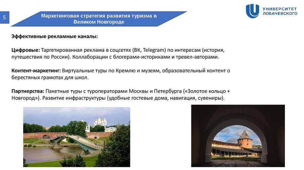 Новгород»). Развитие инфраструктуры (удобные гостевые дома, навигация, сувениры).