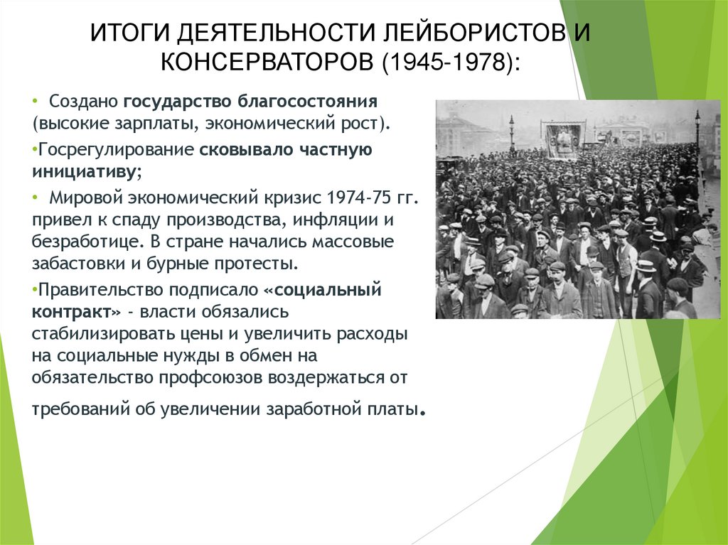 ИТОГИ ДЕЯТЕЛЬНОСТИ ЛЕЙБОРИСТОВ ИКОНСЕРВАТОРОВ (1945-1978):