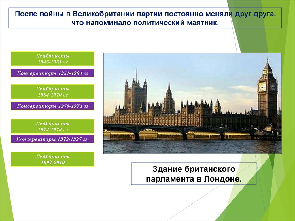 После войны в Великобритании партии постоянно меняли друг друга,что напоминало политический маятник.