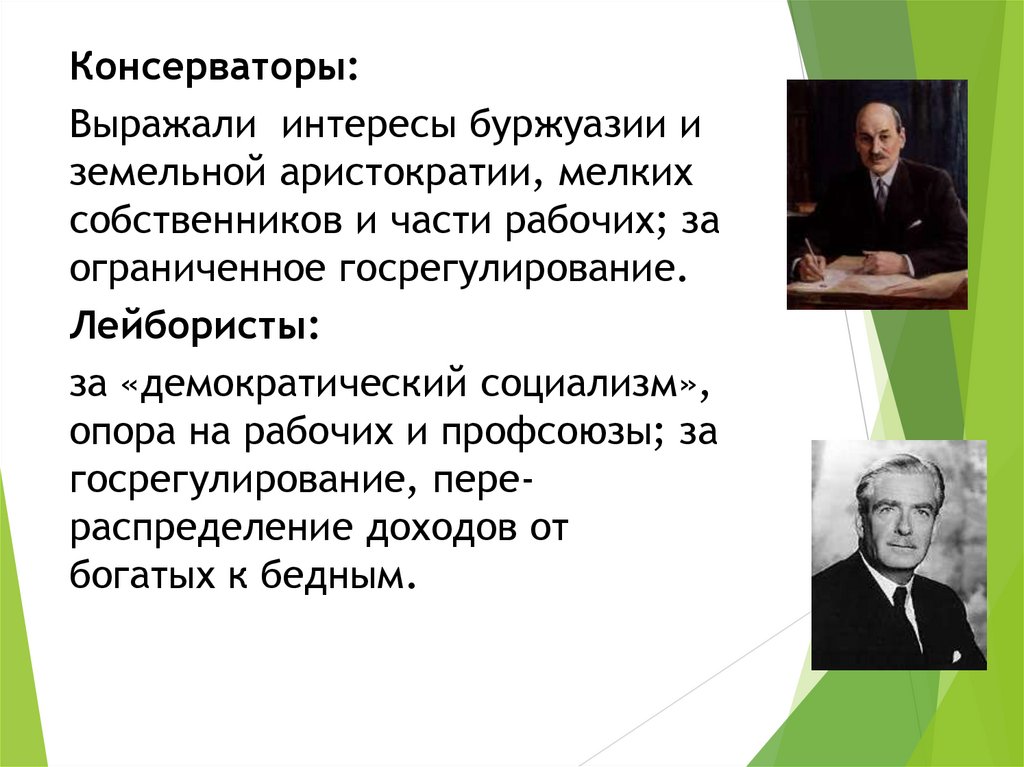 Определяет характерные черты партии лейбористов и консерваторов в