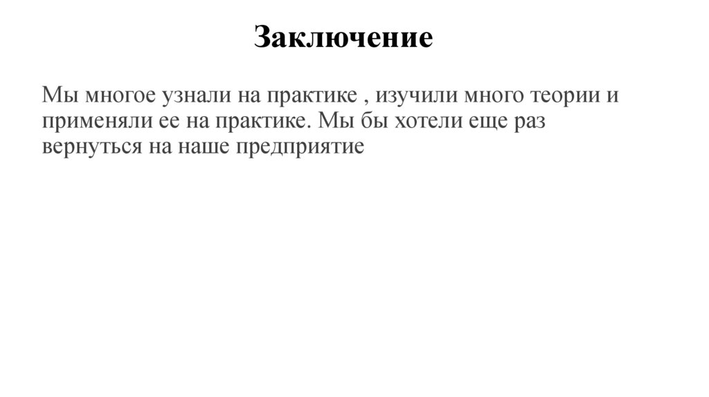 ЗаключениеМы многое узнали на практике , изучили много теории и