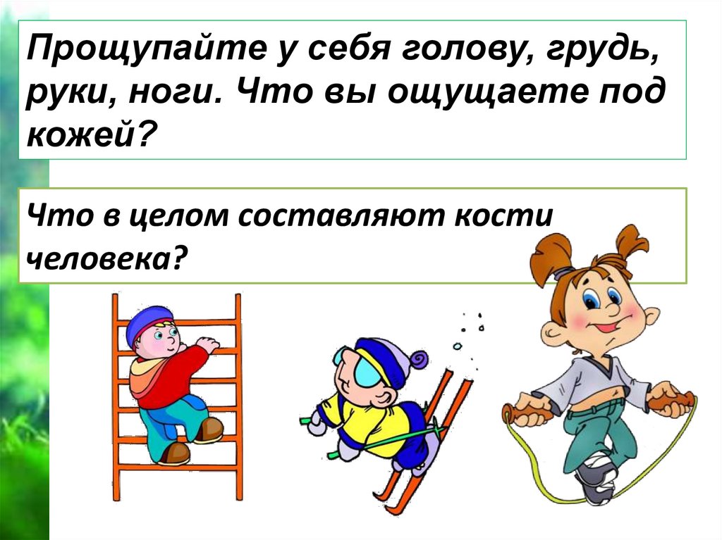 Прощупайте у себя голову, грудь,руки, ноги. Что вы ощущаете под