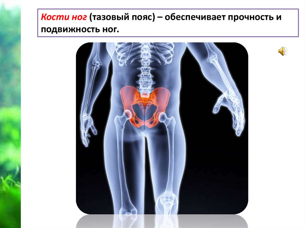 Кости ног (тазовый пояс) – обеспечивает прочность иподвижность ног.