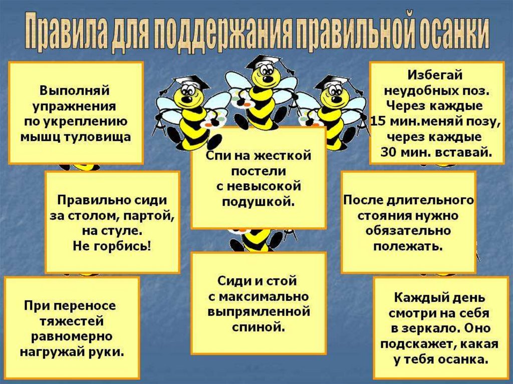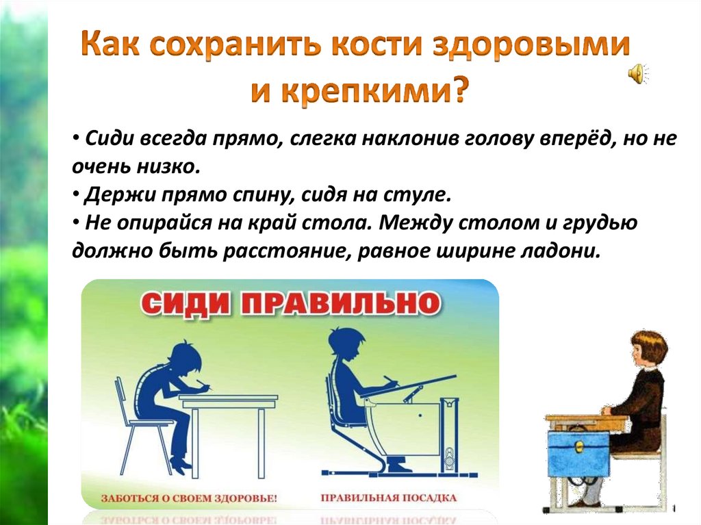• Держи прямо спину, сидя на стуле.