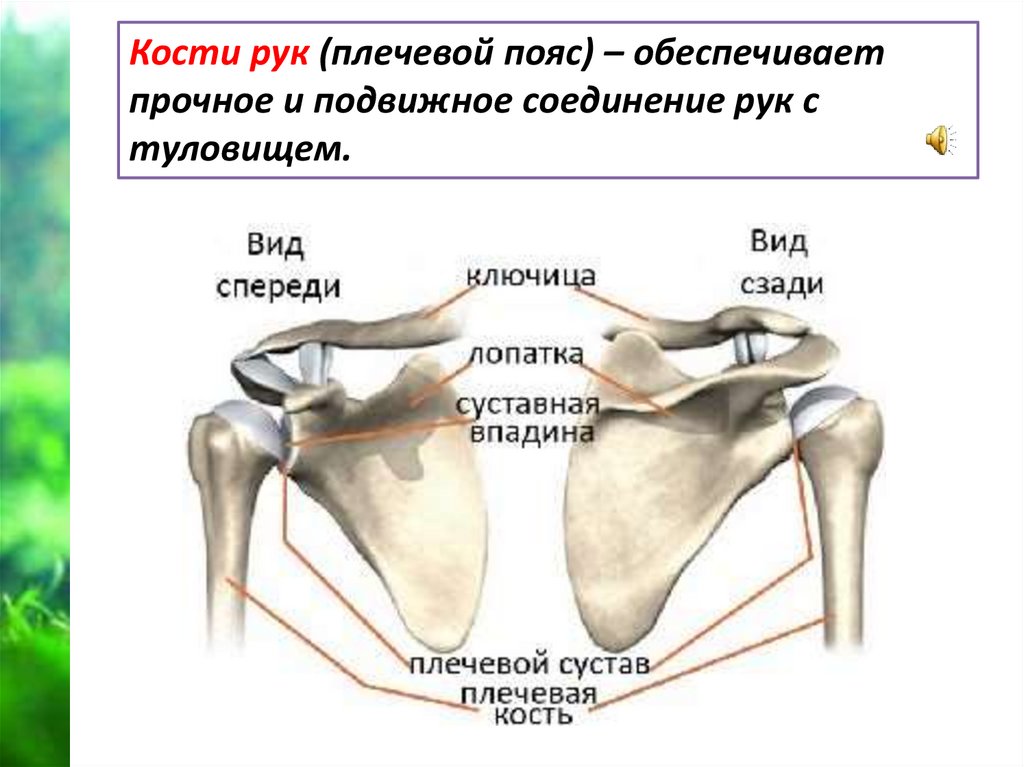 Кости рук (плечевой пояс) – обеспечиваетпрочное и подвижное соединение рук с