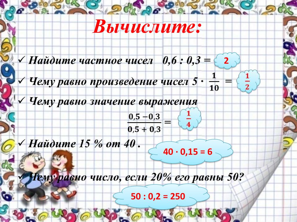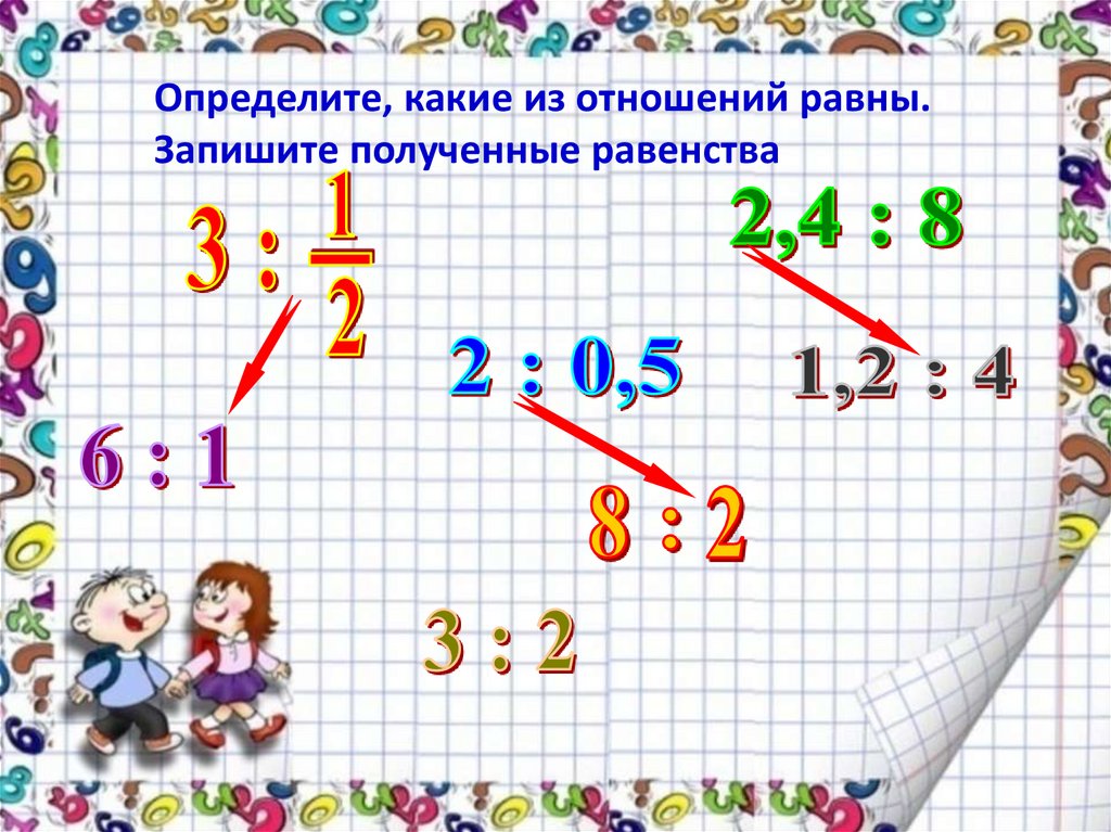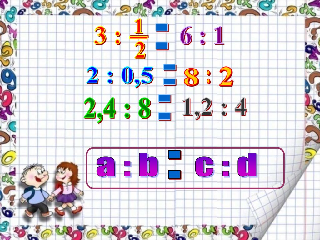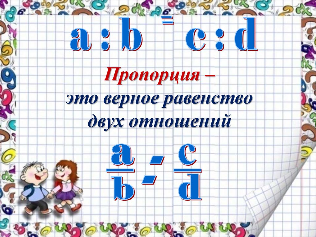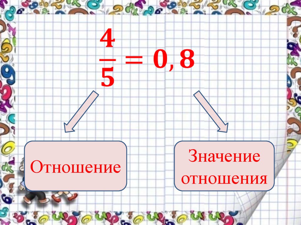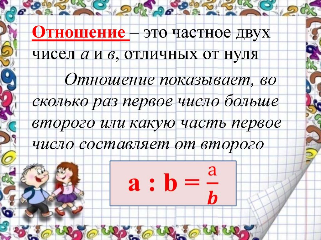 Отношение – это частное двухчисел а и в, отличных от нуля
