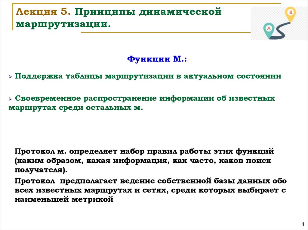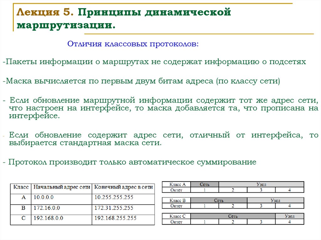 Лекция 5. Принципы динамическоймаршрутизации.
