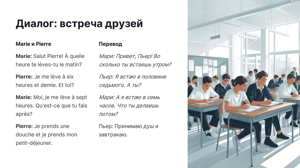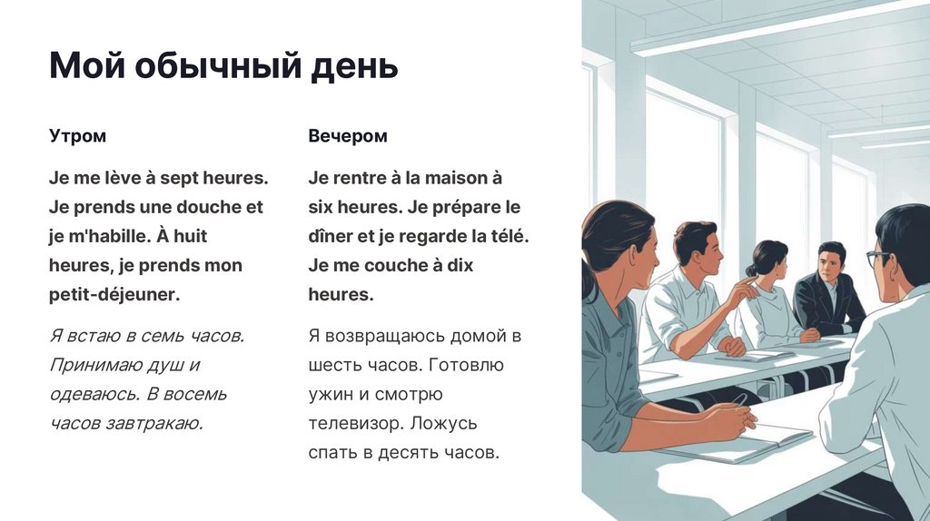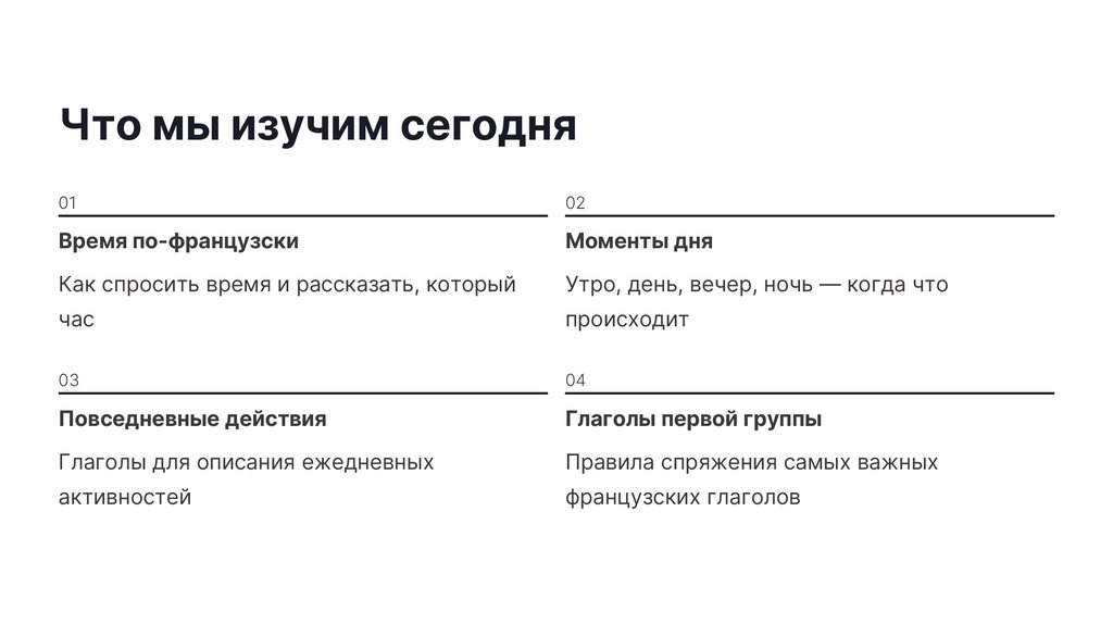 Сегодня мы научимся рассказывать о своём дне пофранцузски, узнаем, как сказать время, и освоим