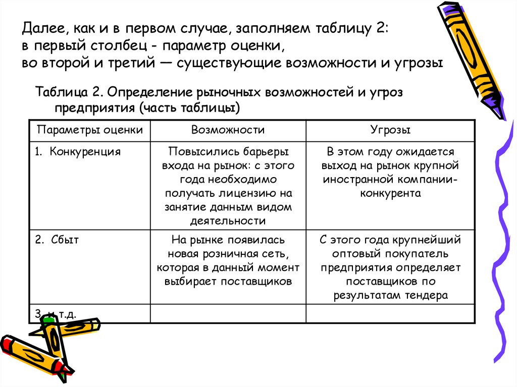 внешними угрозами и возможностями