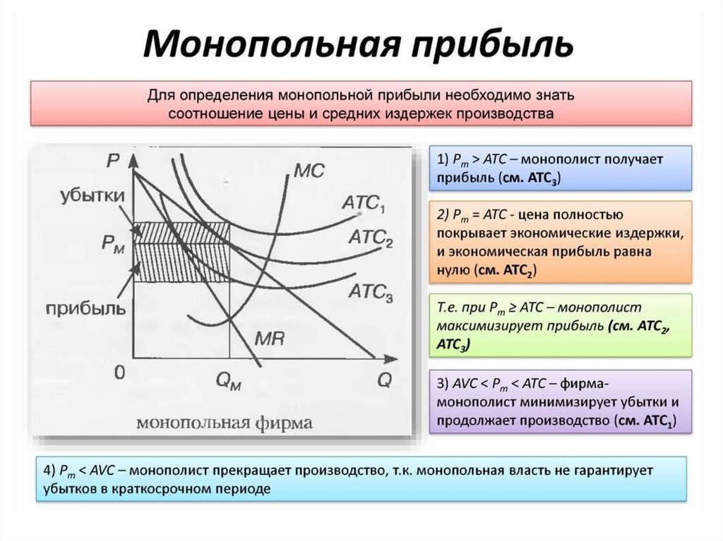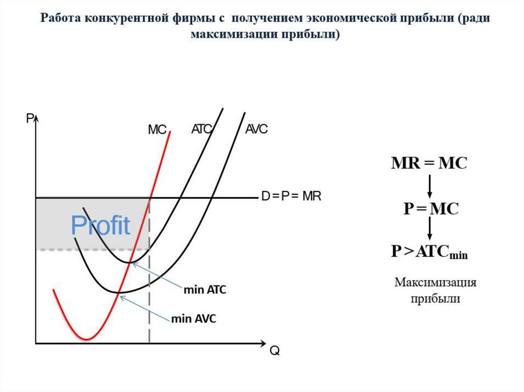 б) Если на каком-то интервале линия цены и предельного дохода располагается выше кривой средних издержек,