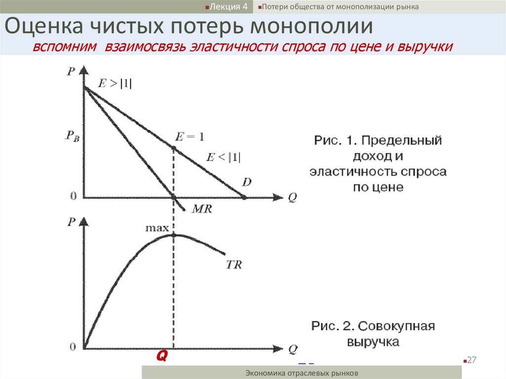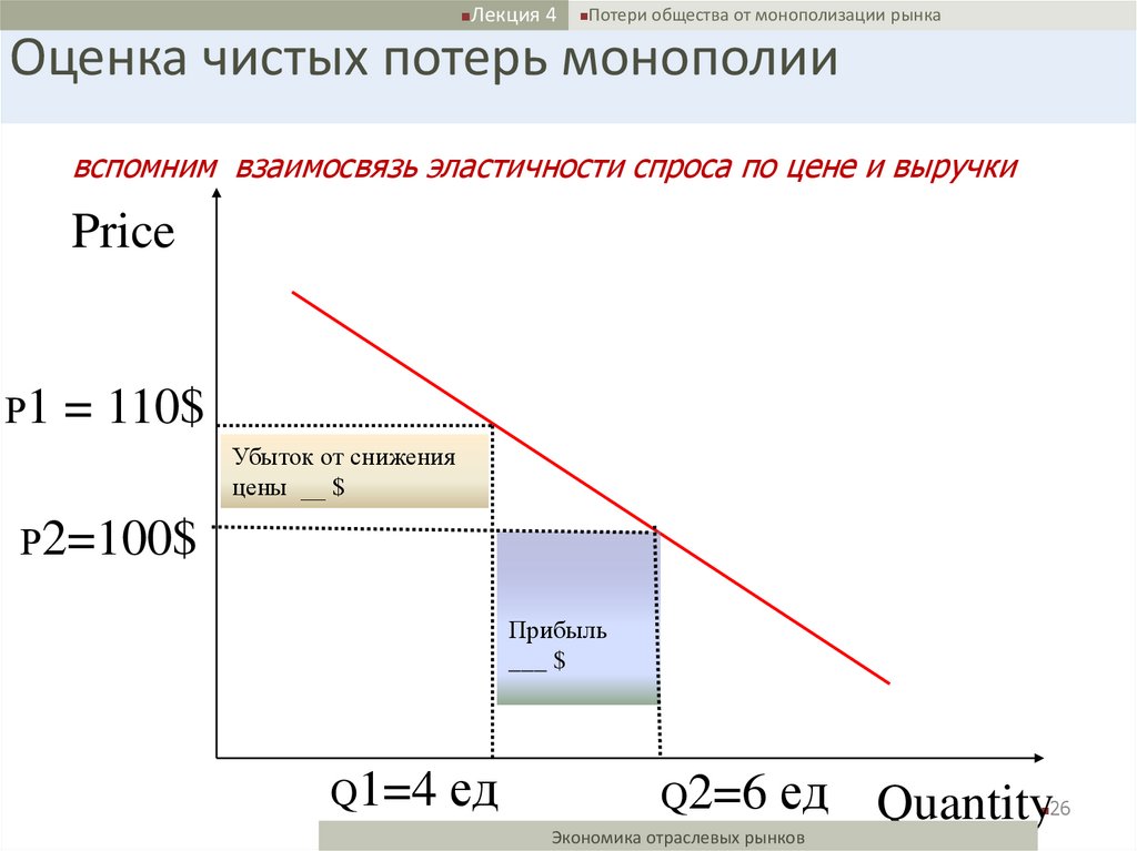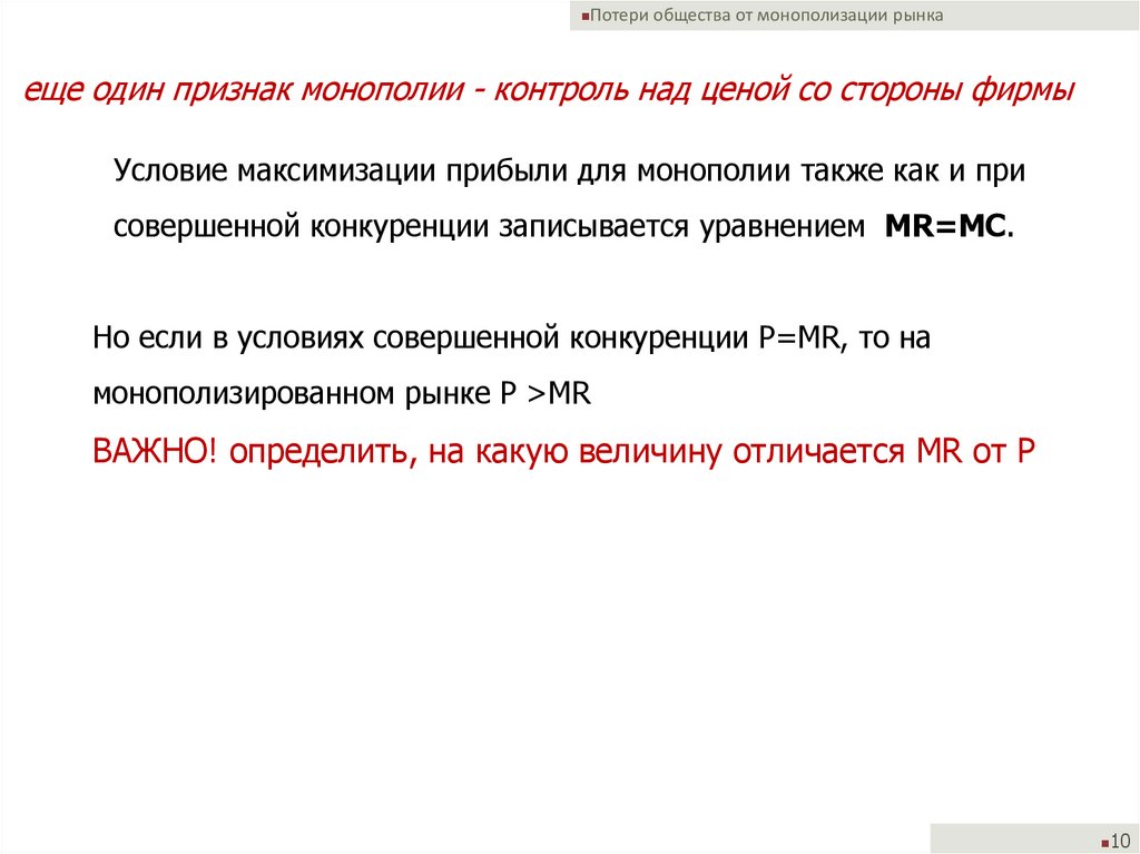 Потери общества от монополизации рынкаеще один признак монополии - контроль над ценой со стороны фирмы