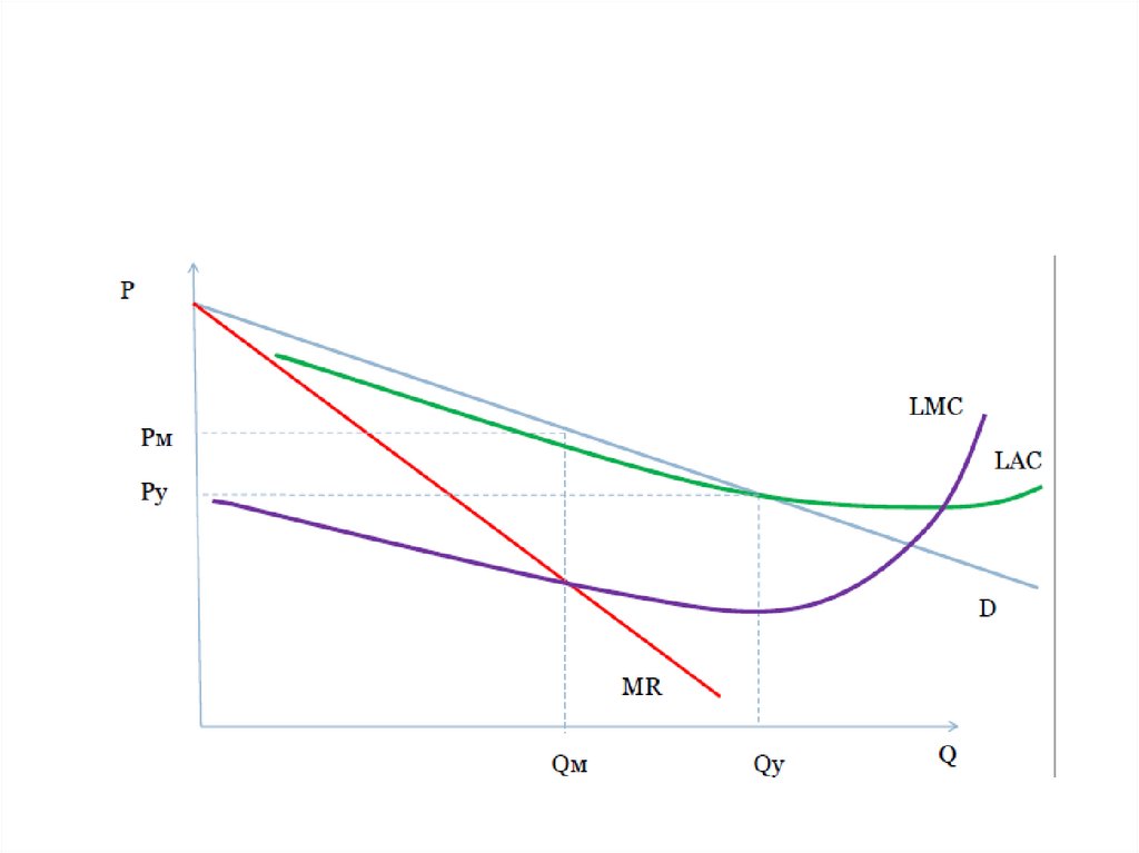 Естественная монополия будет вести себя как обычныймонополист, т.е., ограничивать объемы производства с