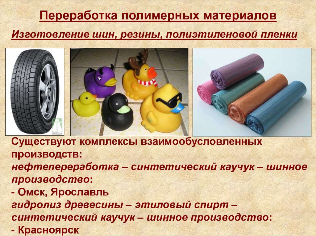 Переработка полимерных материаловИзготовление шин, резины, полиэтиленовой пленки