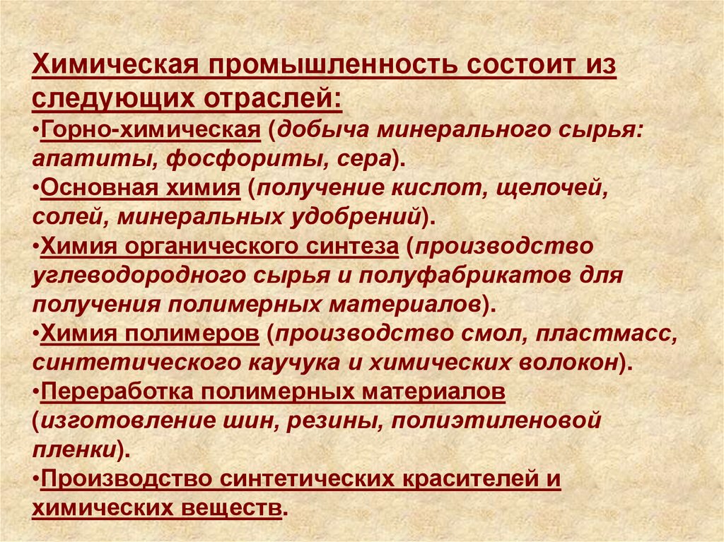 Химическая промышленность – отрасль тяжелойиндустрии. Она определяет развитие НТП, расширяет