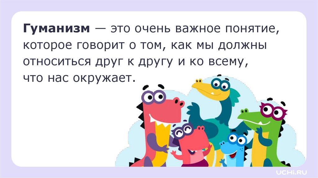 Гуманизм — это очень важное понятие,которое говорит о том, как мы должны