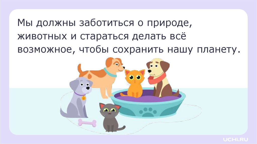 Мы должны заботиться о природе,животных и стараться делать всё