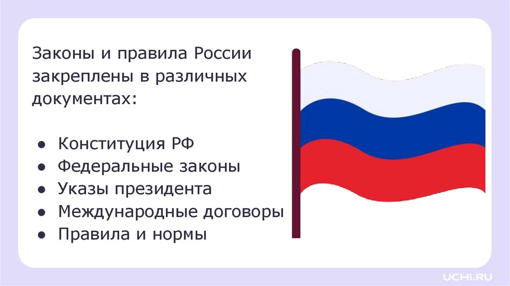 Законы и правила Россиизакреплены в различных