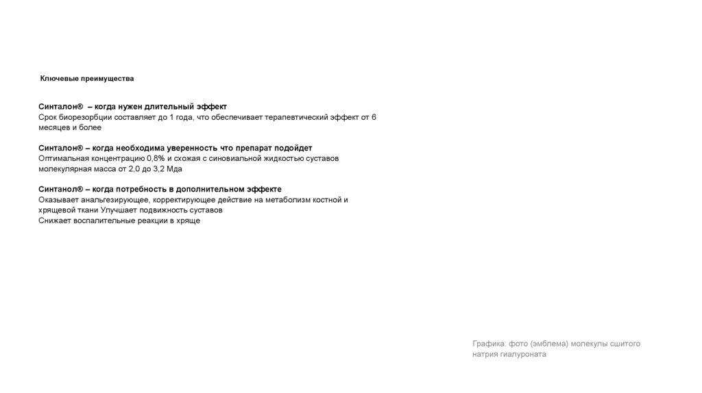 Описание и составСинталон является биологическим аналогом компонента синовиальной жидкости, обуславливающим ее вязкоэластичные свойства. Синталон обладает высокими