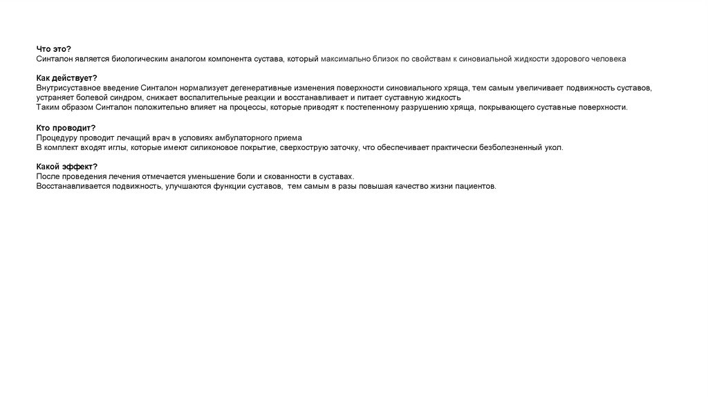 Что это?Синталон является биологическим аналогом компонента сустава, который максимально близок по свойствам к синовиальной жидкости здорового человека