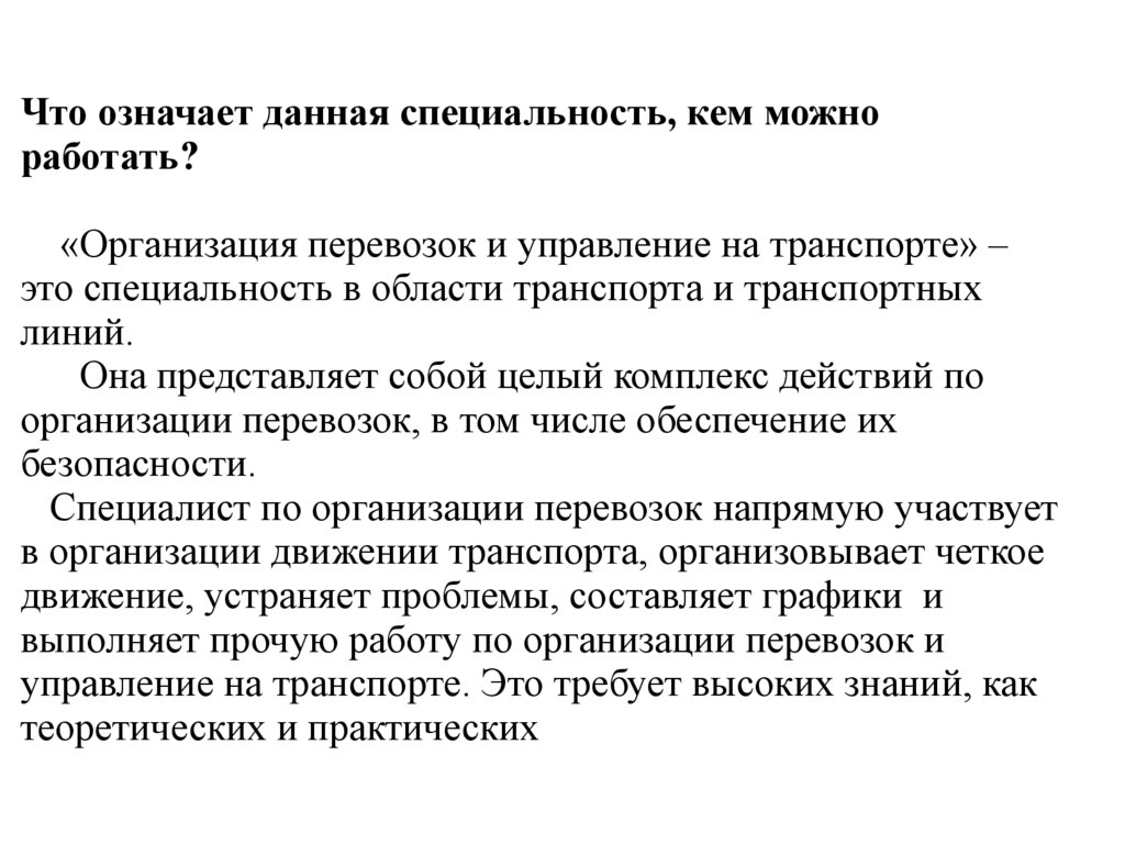 это специальность в области транспорта и транспортных