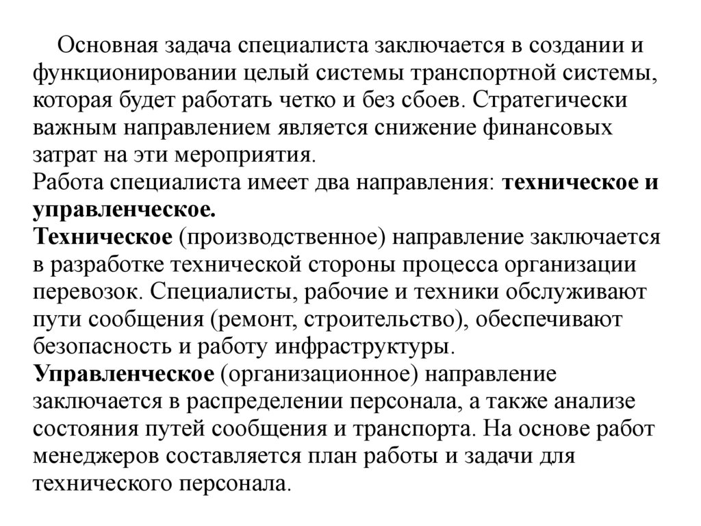 Основная задача специалиста заключается в создании ифункционировании целый системы транспортной системы,