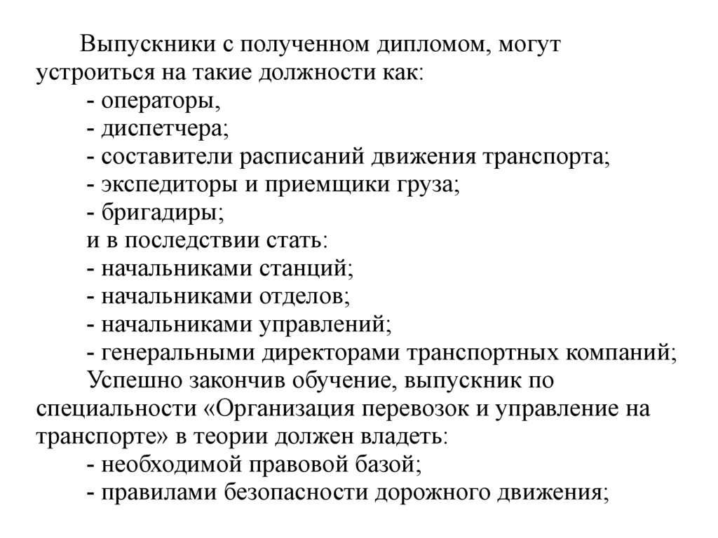 Выпускники с полученном дипломом, могутустроиться на такие должности как: