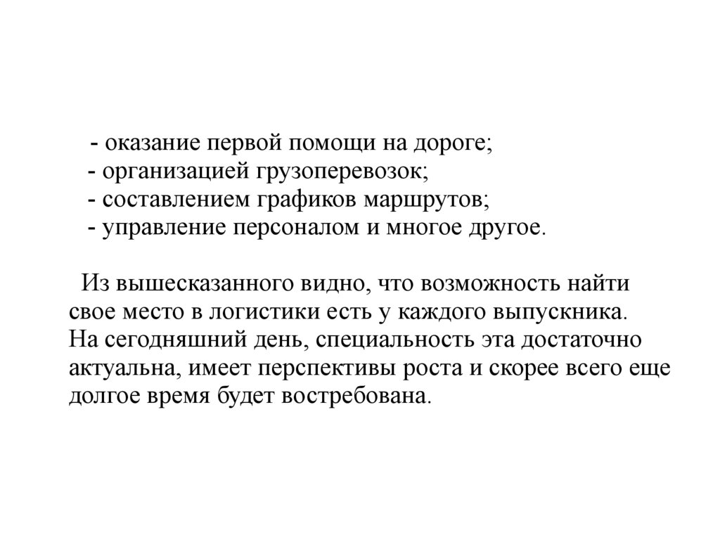 свое место в логистики есть у каждого выпускника.