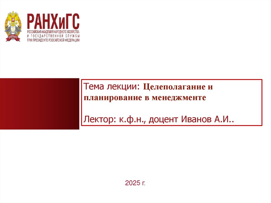 Тема лекции: Целеполагание ипланирование в менеджменте