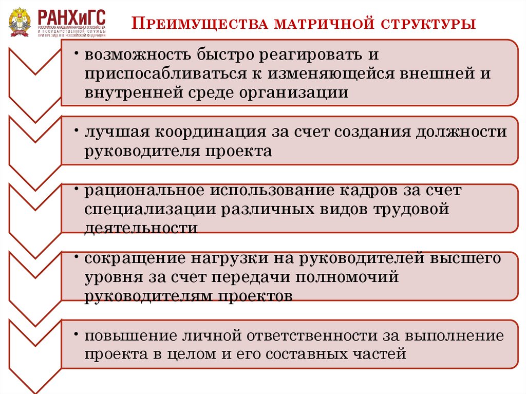 ПРЕИМУЩЕСТВА МАТРИЧНОЙ СТРУКТУРЫ• возможность быстро реагировать и