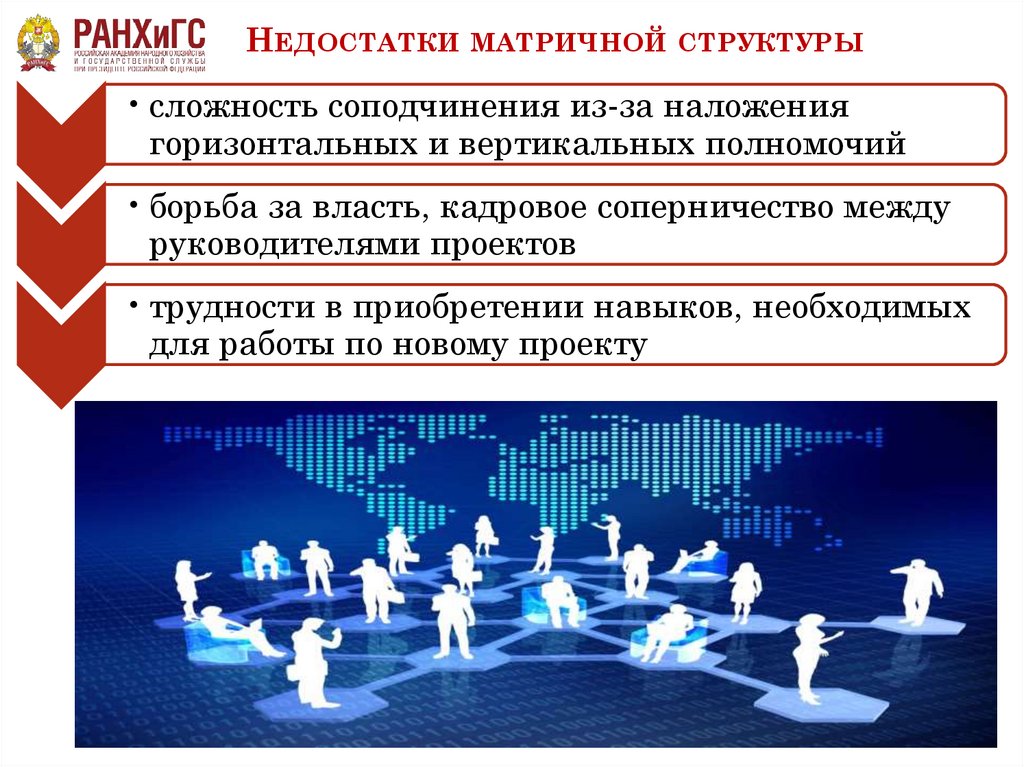 НЕДОСТАТКИ МАТРИЧНОЙ СТРУКТУРЫ• сложность соподчинения из-за наложения