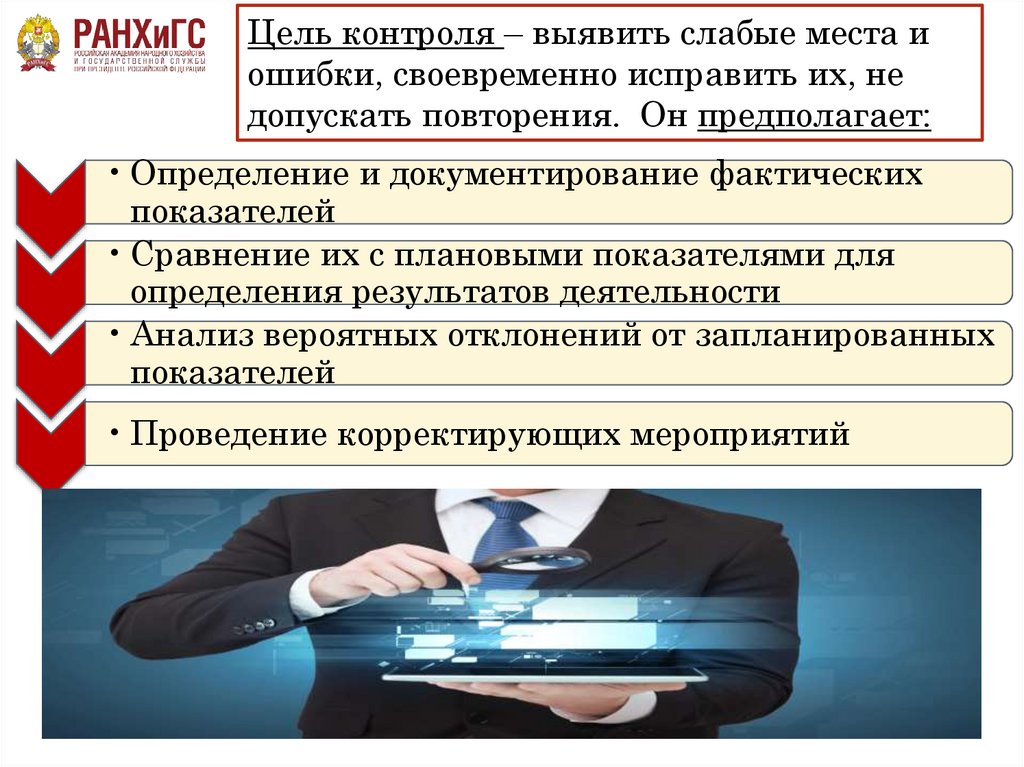 Цель контроля – выявить слабые места иошибки, своевременно исправить их, не