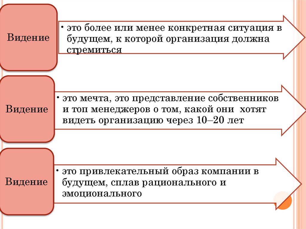 ТРЕБОВАНИЯ К ФОРМУЛИРОВКИ ВИДЕНИЯ• должно играть роль «машины времени» для