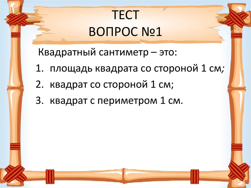 Квадратный сантиметр – это:1. площадь квадрата со стороной 1 см;