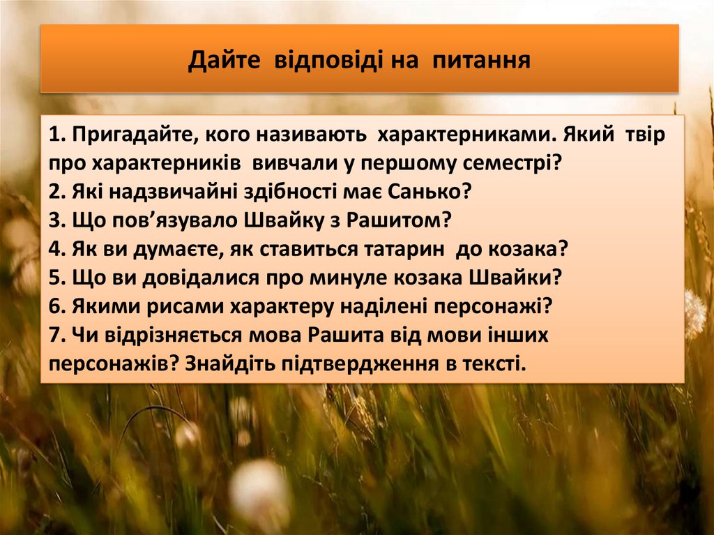 Дайте відповіді на питання1. Пригадайте, кого називають характерниками. Який твір